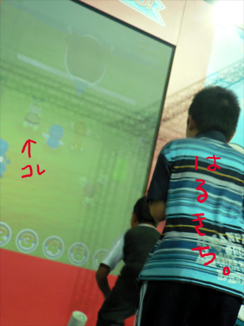 センサーの前でじたばたするとキャラが進み、カメックスが振り返ったとき動いてた子にはハイドロポンプがお見舞いされてちょっと後ろに下がっちゃうのです。