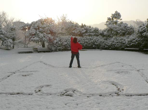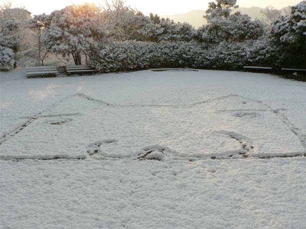 朝イチの携帯からの写真の時点では、まだ降ってました(笑